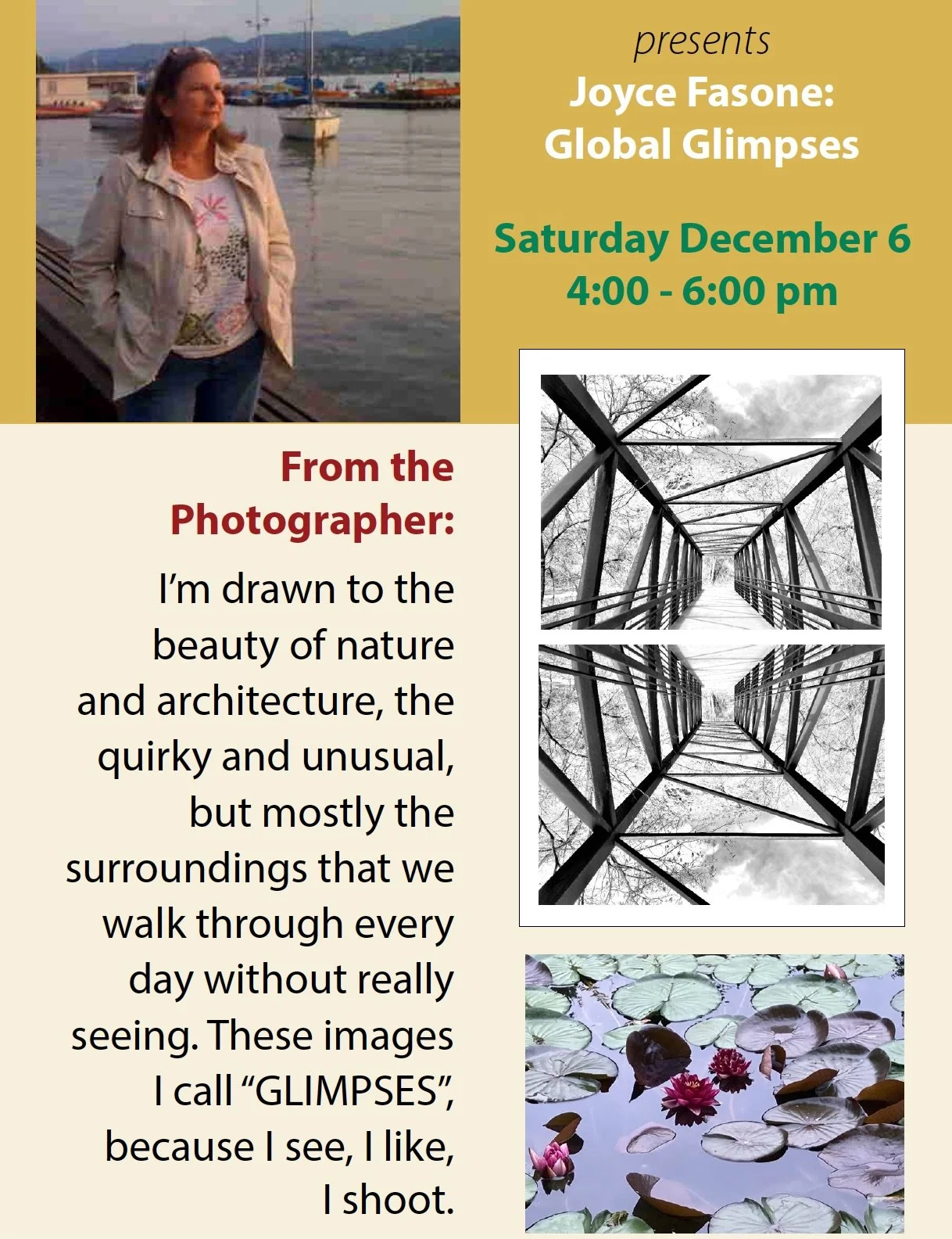 “I have lived seven decades without war, violence, or fear haunting my personal doorstep. I am disheartened by the vast numbers of earth’s people who do not have this kind of freedom, where one can take time to view the world as a complex, mysterious, and stunningly beautiful place. I am really happy to have my link on this planet’s fragile chain of life – in the place and time I live. I treasure life’s colors, shapes and textures and from the exalted to the mundane, I want to pin it down in my work, share it and hold on to the joy this brings.